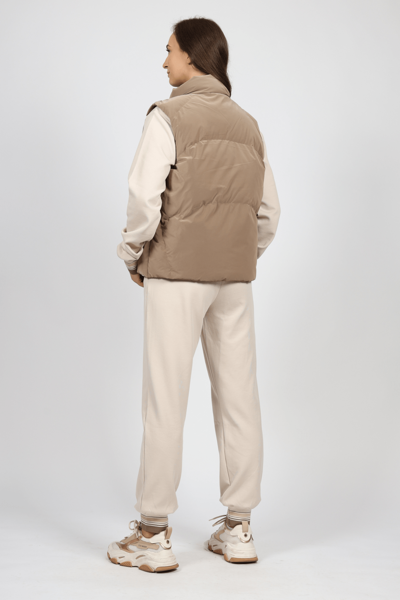The set also includes a 100% polyester thermal vest , which offers additional protection against cold and wind. The thermal vest is ideally designed to be lightweight and comfortable, without restricting movement. Its stylish beige color makes this set suitable for a variety of occasions.